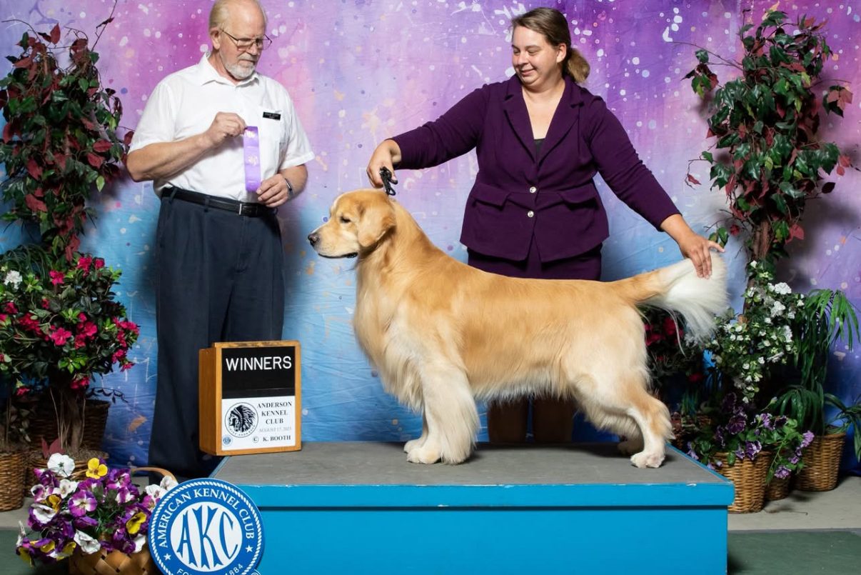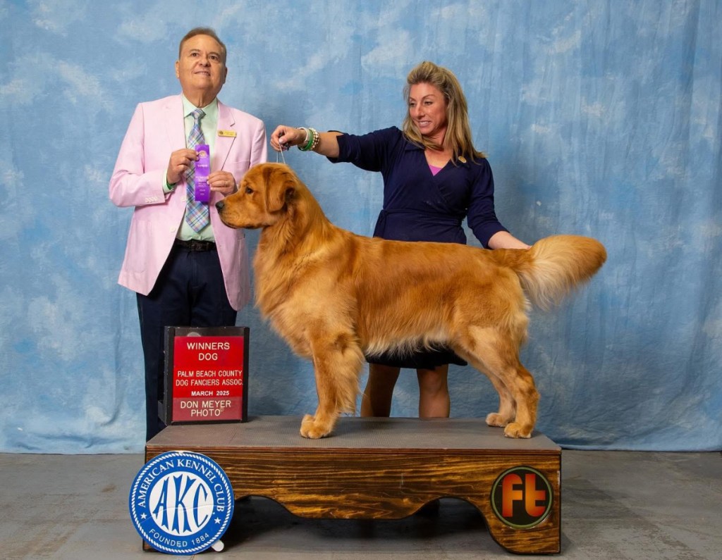 Cannoli and Stitch are both excellent examples of the breed and sport beautiful expressions, correct top lines, and beautiful temperaments. Cannoli is goofy and the epitome of a Golden Retriever. Loving, eager, and must carry something in her mouth at all times. She has a very nice drive and has her SHR and JH titles. She is extremely birdy and always ready to go. Stitch brings a lot to the table and we’re very excited to see what this pair produces. With a beautiful chest, top line, and head piece; Stitch is a star. Moving beautifully, he quickly achieved his UKC RGRCH and is one major away from his AKC CH. Stitch was number 1 golden in UKC and number 7 gun dog in 2024 with most points acquired in history for Goldens. Stitch is 100% owner handled by Nicole Flores. This litter is beauty and brains in a neat package.